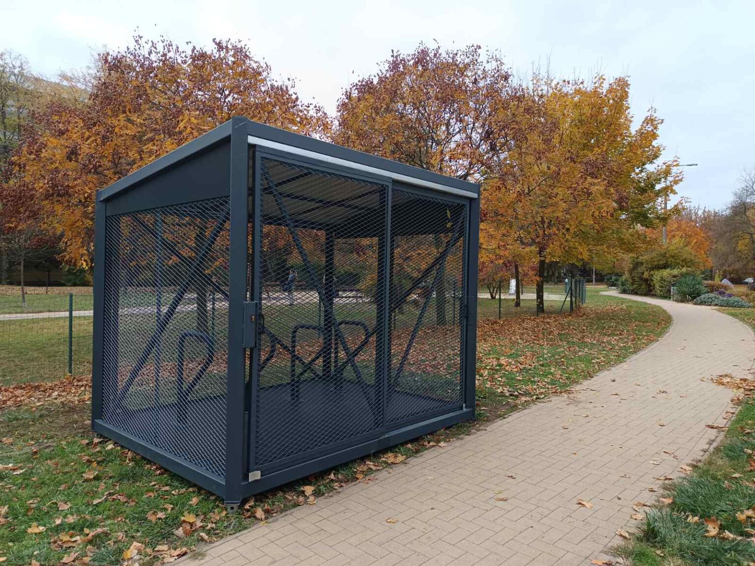 A kerékpártárolók ízléses kialakításúak, zártak, vandálbiztosak, minden oldalról védettek, tetejük pedig fedett. A biztonságról belső kamera gondoskodik, így a biciklik kényelmesen és biztonságosan elhelyezhetők. Az esti órákban pedig mozgásérzékelős világítás segíti a kerékpárok elhelyezését. A bejutás a modern megoldásoknak köszönhetően egyszerű: a tárolók mobiltelefonról, digitálisan nyithatók.