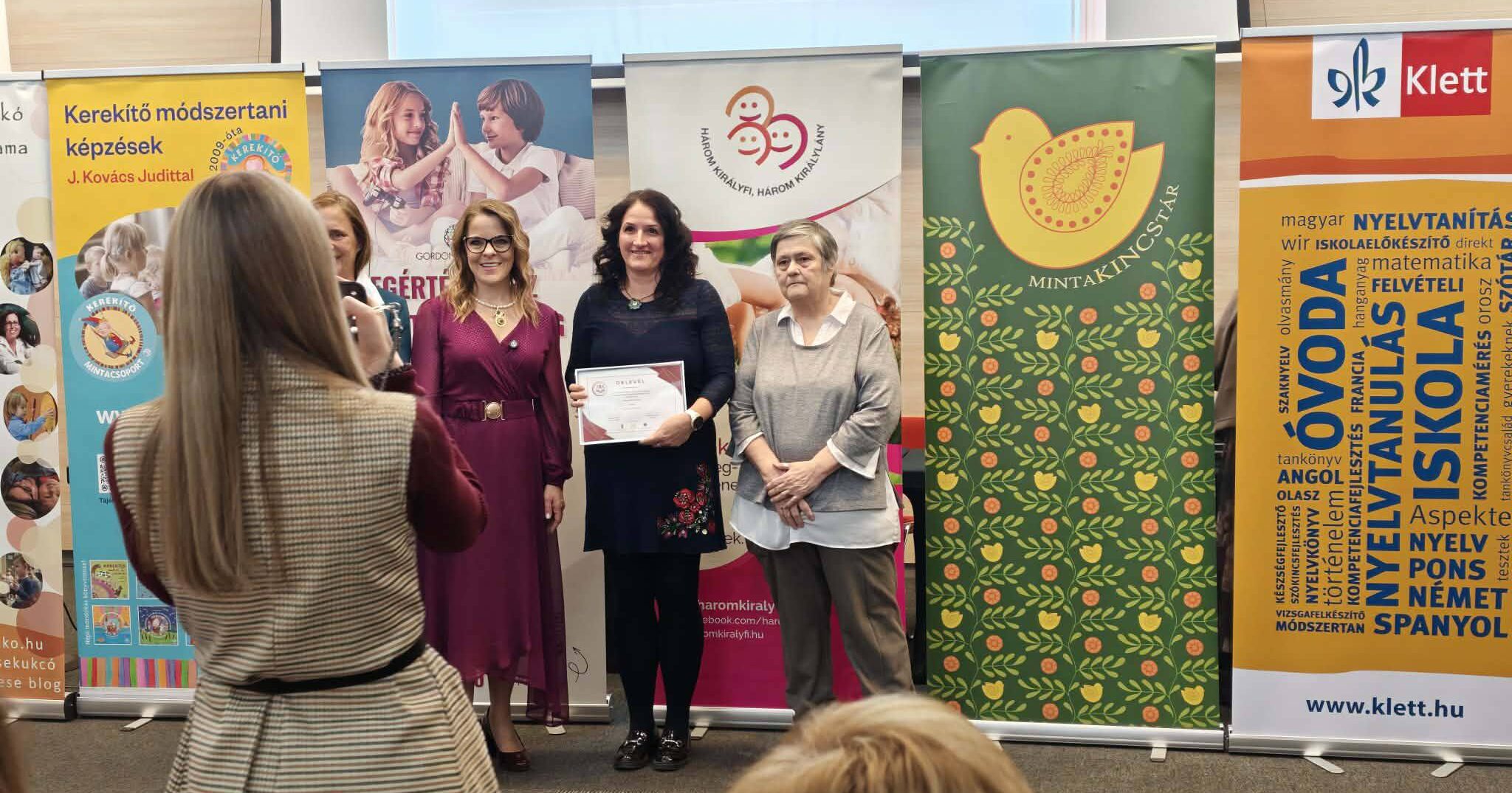 Rangos szakmai elismerésben részesült az újpesti Bőrfestő Óvoda közössége a Kongresszusi Központban megrendezett Pedagógus Expón. A Családbarát Köznevelési Intézmény elismerő oklevelet vehették át, emellé pedig különdíjként egy 200 ezer forint értékű szakmai napot is kaptak. Családból és barátságból persze eddig sem voltak híján, legfeljebb erről most már egy keretbe foglalt papírjuk is van – mondja Enyedy Ágota igazgató.