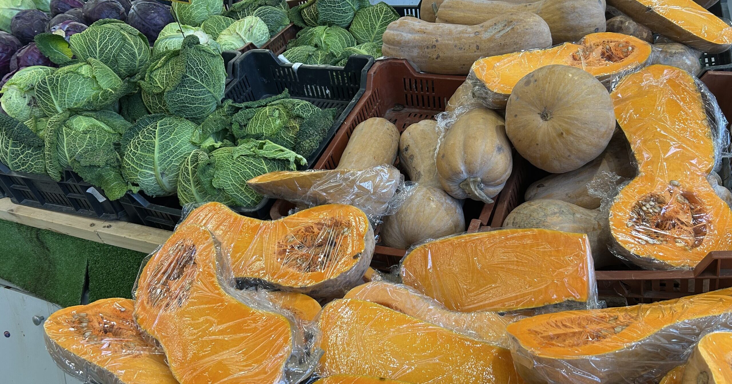 Zöldségből is bőséges a választék, érdemes körülnézni, mert az árak között bizony van – igaz nem nagy – különbség. A karfiolból találhatunk kisebbet és nagyobbat is, az ára 500 Ft/kg, a fejes káposzta ára 300-480 Ft között mozog kilogrammonként, a lila káposzta kilójáért pedig 400 forintot kérnek. A vöröshagyma ára 280 Ft/kg körül mozog. Gyönyörű a sütőtök, ennek kilóját 290 Ft-ért kínálják. Szép, színes a kaliforniai paprika, van piros, sárga és zöld is, igaz kicsit borsos az ára: 2480 Ft/kg. A sárgarépa ára 399 Ft/kg, a zelleré 800 Ft/kg, az édes burgonya kilójáért pedig 680 Ft-ot kérnek.