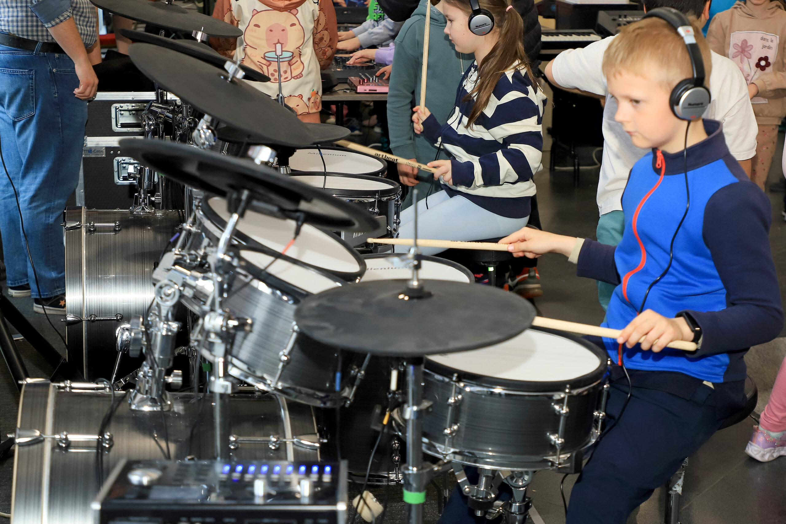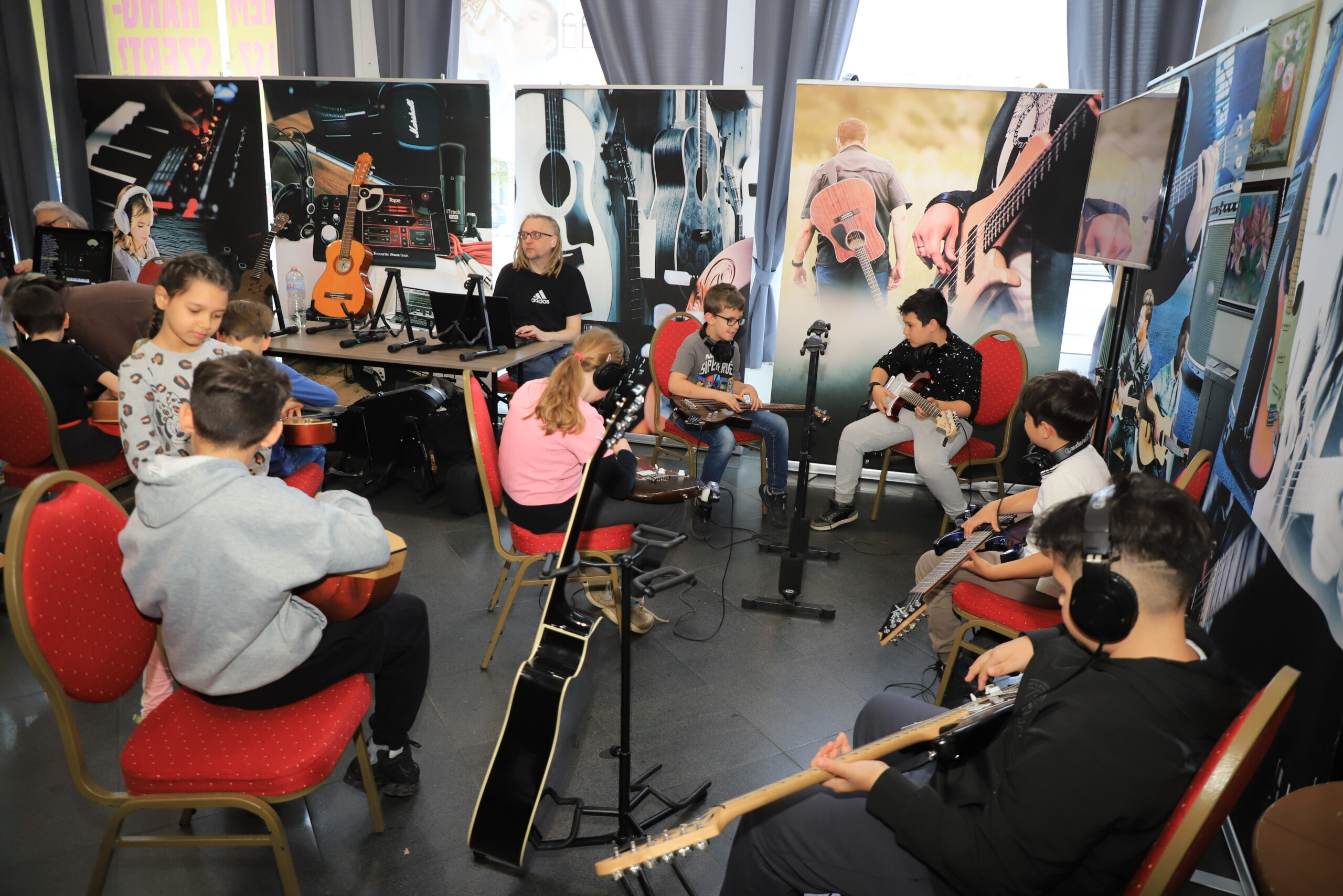 Pacziga Linda, az Újpesti Kulturális Központ munkatársa, a kiállítás állandó szervezője azt mondja, az újpesti pedagógusok már szeptemberben kérdezgetik őt, mikor nyit ki újra a különleges „zenei játszótér”, ahol a gyerekek nemcsak nézegethetik, de a profik kalauzolásával üthetik, pengethetik, nyomogathatják, nyüstölhetik is a különféle eszközöket – gitár, basszusgitár, dobok és egyéb ütős hangszerek, billentyűsök, népi és klasszikus hangszerek, elektronikus kütyük -, sőt, még az énekhangjukat is próbára tehetik, és a „stúdiózás” rejtelmeibe is bepillanthatnak. A hangszerek felvonulását rendre előadások, rendhagyó énekórák és koncert jellegű előadások is kísérik. Az újpesti gyerekek ez alatt a három nap alatt ismerkedhettek például az európai népek hangszereivel, a könnyűzene, a gitár történetével, behangolt műanyag csövekkel örömzenélhettek, és időutazhattak a dobbal és trombitával is.