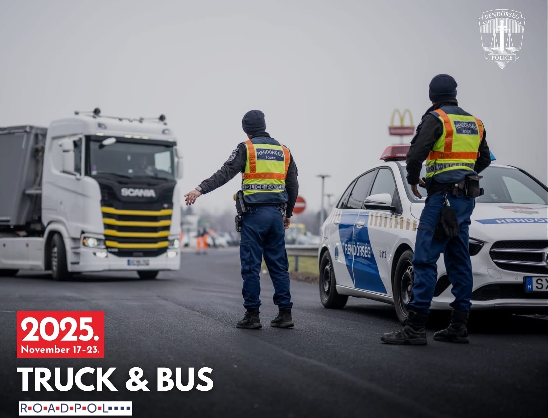 November 17. és 23. között Magyarország teljes területén számítani lehet fokozott rendőri jelenlétre. Nem egy-egy vármegye vagy régió kerül célkeresztbe, hanem minden olyan út, ahol a nehéz tehergépjármű-forgalom és a buszok jelenléte befolyásolhatja a közlekedés biztonságát.