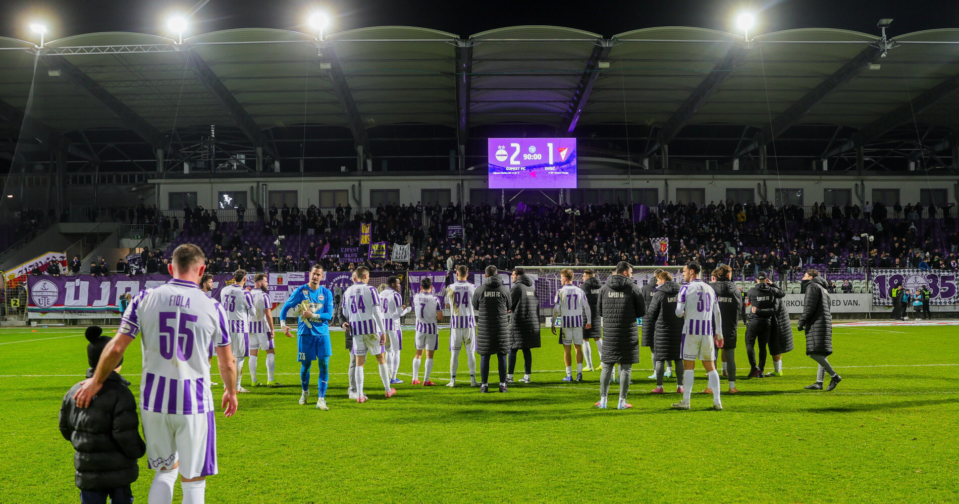 A lila-fehérek az NB I. 22. fordulójának pénteki összecsapásán 2–1-re múlták felül a tabella dobogós helyezésén álló Debrecent, ezzel az idény negyedik tavaszi bajnoki mérkőzésén megszerezték első győzelmüket, értékes három ponttal gazdagodva hazai pályán.