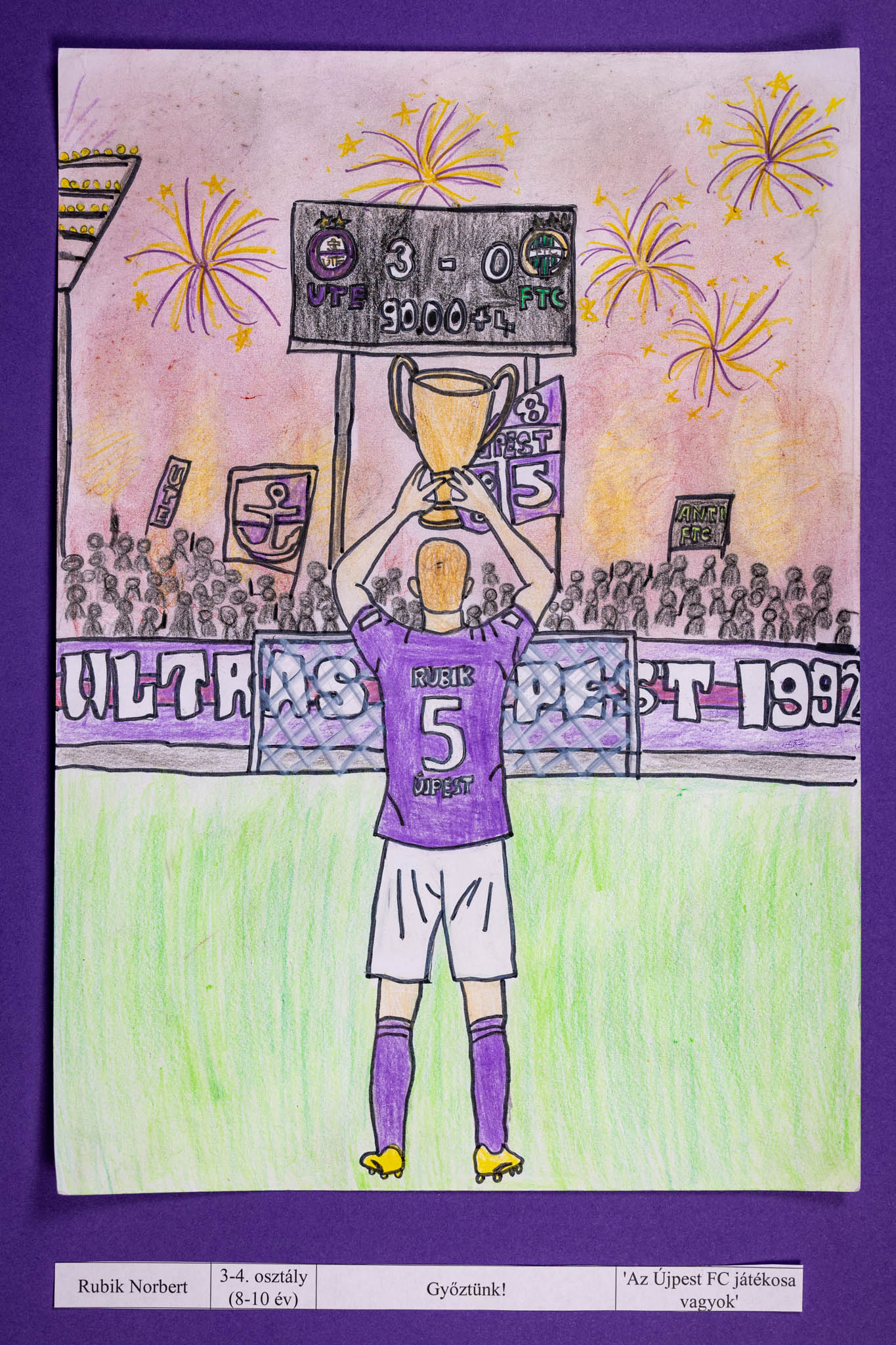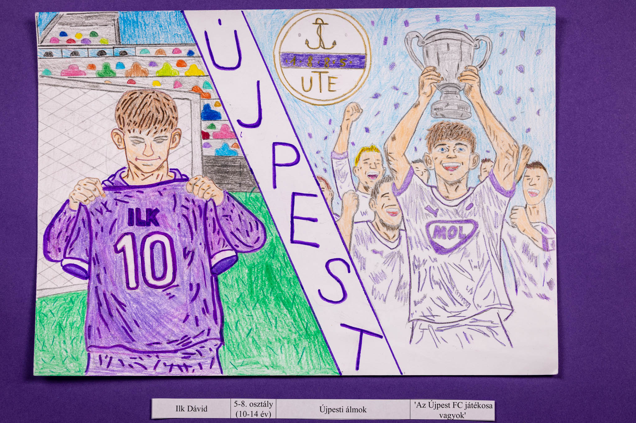 Az alkotásokon a gyerekek saját elképzeléseik szerint jeleníthették meg magukat újpesti mezben. Volt, aki gólörömöt rajzolt, mások kupaemelést vagy éppen közös ünneplést a csapattal.