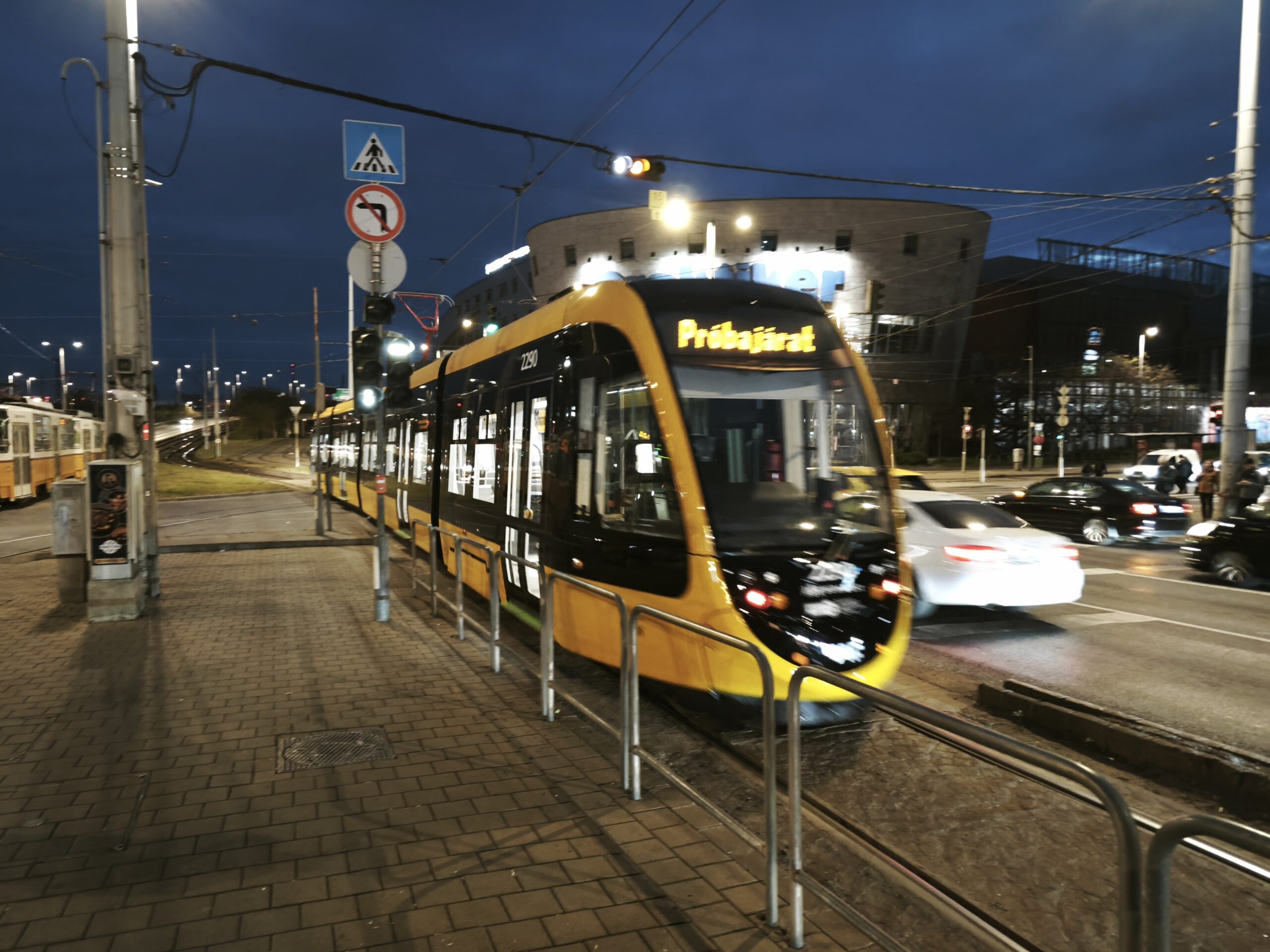 Jelen sorok írójának sikerült is lencsevégre kapnia ez utóbbi példányt, a 2290-es pályaszámú villamost még próbafutás közeben. Az alábbi képen az ominózus esti próbafutás látható: